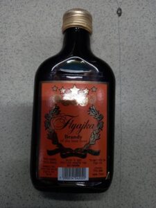 "Flyajka Brandy of the best taste משקה כהיל בטעם ברנדי, כוהל 40%, תכולה: 200 מ"ל, מיוצר ע"י IA. עבור אלקומפני (מ.ס.) בע"מ", נושא בר קוד 7290014542020. נמצאה רמת מתנול פי כ-125 מהמותר.