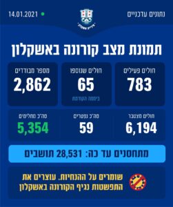 ביממה החולפת: אובחנו 65 חולים חדשים בעיר והתחסנו 877 תושבים.