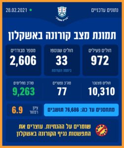 מספר המתחסנים בעיר עד כה: 76,686! עוד קצת מאמץ שלכם ואנחנו מנצחים את הקורונה