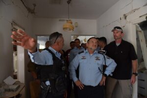 לאחר מכן הגיע המפכ"ל לסיור בבית באשקלון שספג פגיעה ישירה ובו נהרגה אישה ונפצעה קשה אישה נוספת אשר חולצה על ידי רפ"ק אבי פרנקו, הגר בסמוך למקום. אבי סיפר למפכ"ל על שארע ועל פעולות החילוץ של תושבת המקום שעדין מאושפזת במצב קשה בבית החולים.
