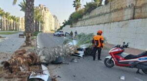 _לדברי עוברי אורח הנהגת התנגשה בעץ, והעץ בעקבות כך נעקר וקרס על רכבם_