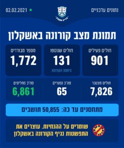 ביממה החולפת: אובחנו 131 חולים חדשים בעיר. מספר המתחסנים בחיסון הראשון בעיר עד כה: 50,855!