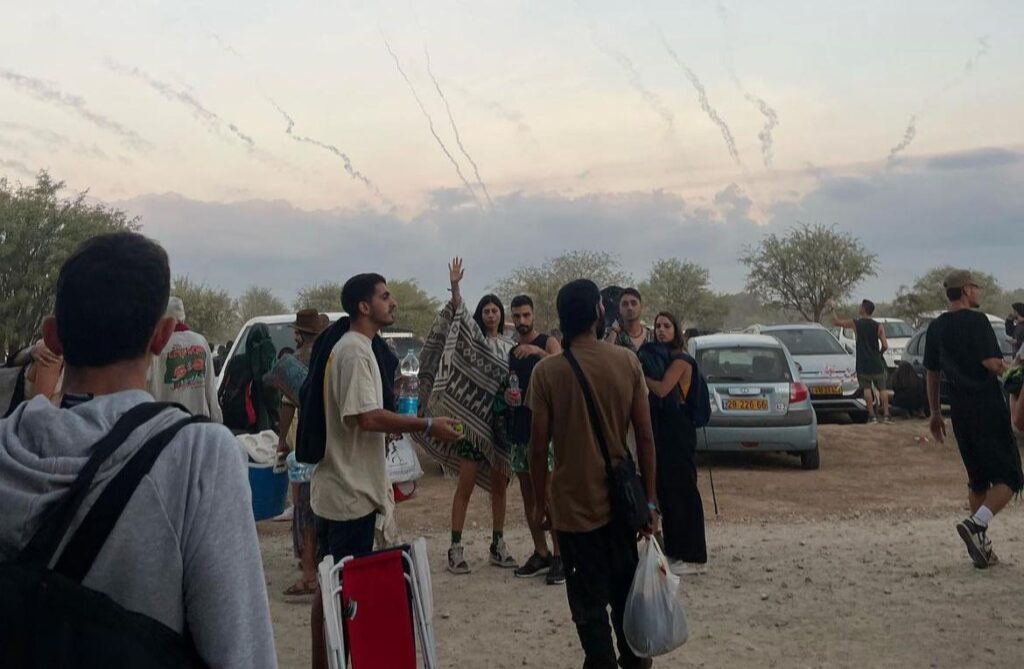 "השעה הייתה 6:30 בבוקר אני וליאור רוצים לצאת לכיוון האוטו מהמסיבה כי היה לי קר, אני רואה בשמיים יירוטים ומבינה שהמצב לא טוב, אני תושבת אשקלון אני מורגלת למצבים האלו אבל זה היה משהו אחר, משהו שאף פעם לא ראיתי. מאות יירוטים מעל הראש והבטן מתהפכת. נכנסתי להתקף חרדה התקשרתי ישר למשפחה כדי לראות אם בעיר הם באותו מצב. המוזיקה הופסקה, הכריזו שהמסיבה הסתיימה וברמקולים צבע אדום מהדהד. יצאנו לכורכר החניה.. אנשים התחילו להסתובב שם בפאניקה ותהו אם עדיף לנסוע כשיש ככה טילים ולהסתכן או להישאר בשטח הפתוח ולהשתטח. השוטרים לא נתנו לנו להישאר בשטח ופינו את כולם.. שמעתי ממישהו בחנייה שאח שלו לפני כמה דקות יצא לכיוון הכביש ומחבלים ירו עליו. שיתפתי את הקרובים שלי שבאו איתי למסיבה והם אמרו לי שכולם בפאניקה ונוהגים להגזים ולהמציא בייחוד שהם תחת השפעת סמים/אלכוהול.