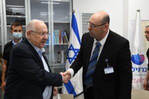 תחת מטח רקטות כבד לעבר אשקלון, הגיע נשיא המדינה ראובן (רובי) ריבלין אל המרכז הרפואי "ברזילי" שבעיר היום, יום חמישי, ב' בסיוון, 13 במאי. את הנשיא ליוו ראש עיריית אשקלון תומר גלאם, ומנהל מרכז הרפואי "ברזילי" פרופ' יניב שרר.