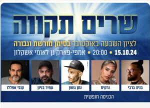 שרים תקווה: עיריית אשקלון תציין את השבעה באוקטובר במופע בסימן מורשת וגבורה